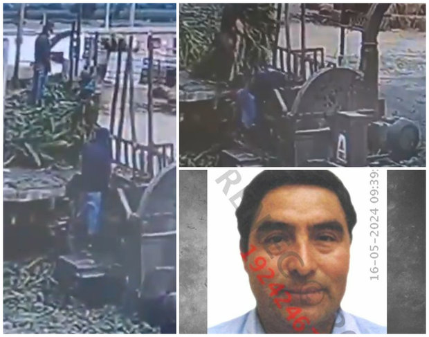 El hombre trabajaba junto a varios compañeros en la elaboración de forraje para ganado.