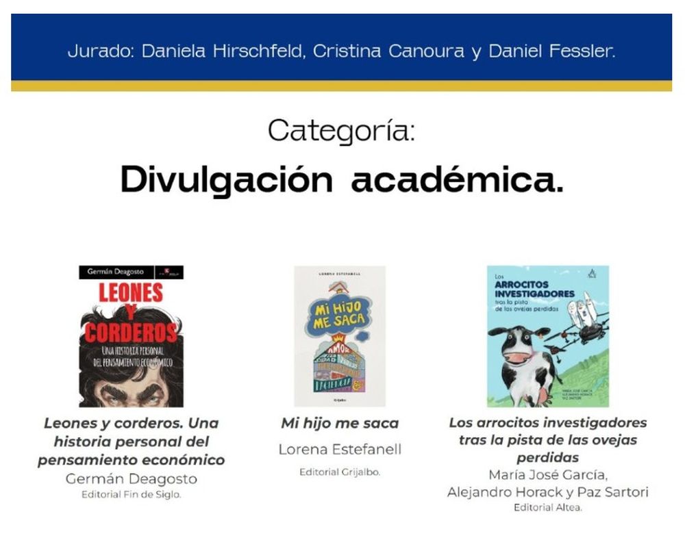Para evaluar la categoría en la que fue ternado el libro de INIA fueron designados Daniela Hirschfeld, Cristina Canoura y Daniel Fessler.