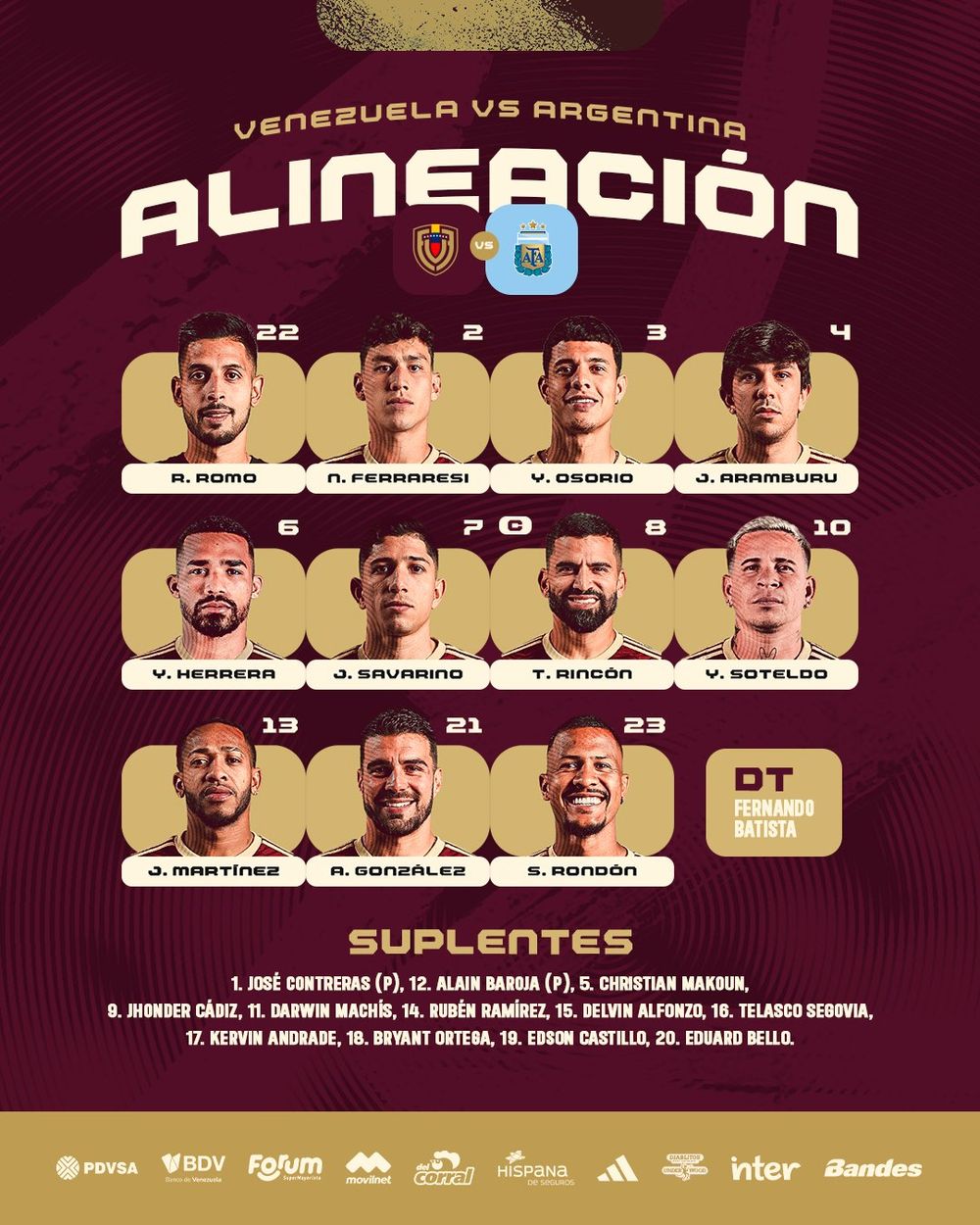 Así jugará Venezuela contra Argentina
