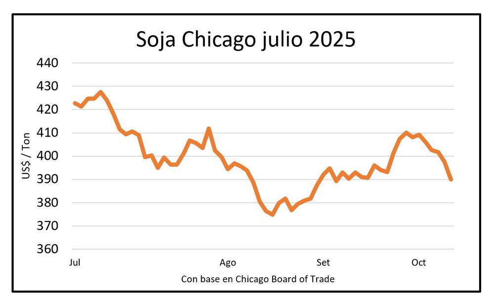 Las cotizaciones en Uruguay acusaron el golpe. Este viernes los exportadores manejaban referencias de US$ 375 por tonelada para la poca soja aun disponible y US$ 360 para la de la próxima cosecha, un valor que compromete los márgenes y vuelve a poner un manto de duda sobre la intención de siembra de cultivos de verano.