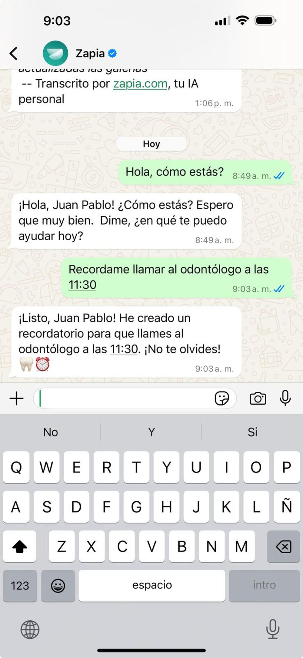 La novedad de esta función radica en su facilidad de uso: basta con indicar a Zapia qué se desea recordar y cuándo, para recibir una notificación puntual