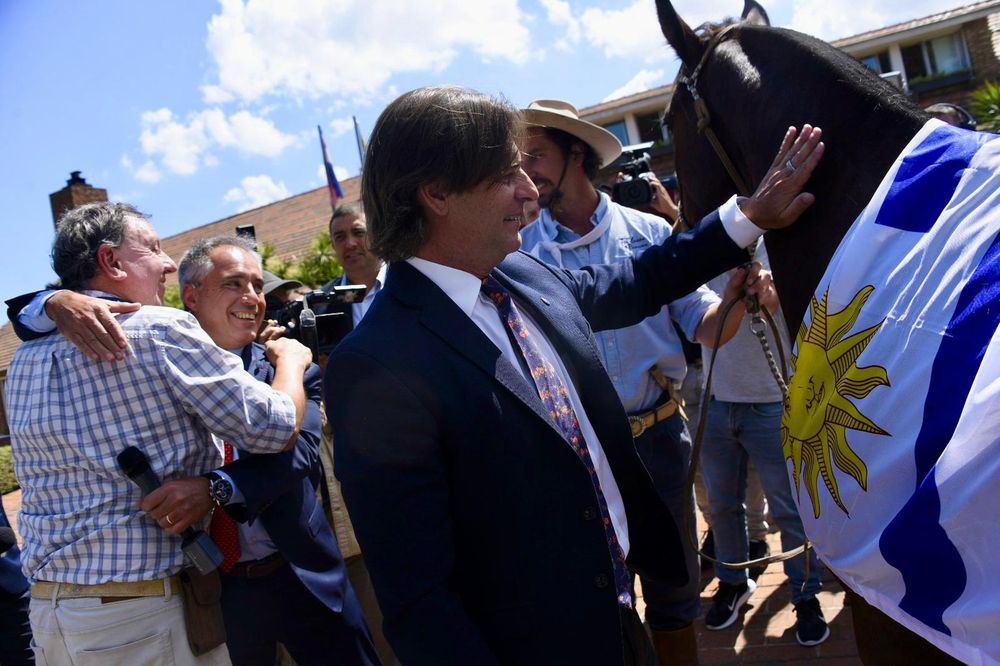 El obsequio fue una yegua criolla de cuatro años de la Cabaña San Pedro, propiedad de Guillermo Sanguinettí. “Es colorada, con patas blancas, pero colorada”, comentó el presidente de la Cámara de la Construcción mientras se la veía en las pantallas del evento. “Es de la coalición”, contestó Lacalle.