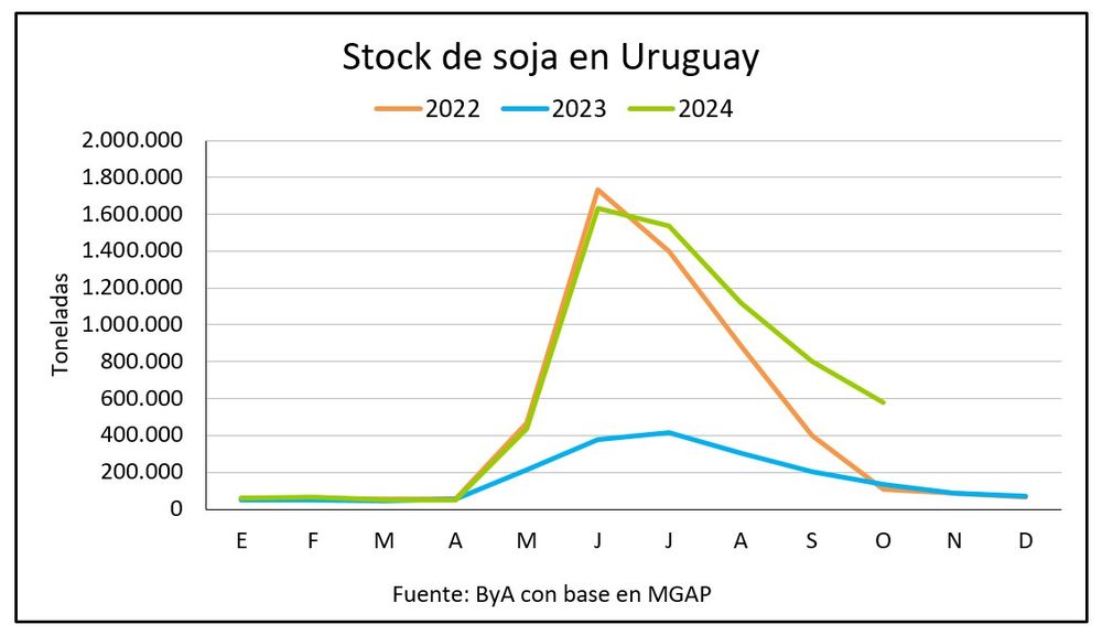 Según el MGAP las existencias de soja a octubre son las más altas desde 2018.