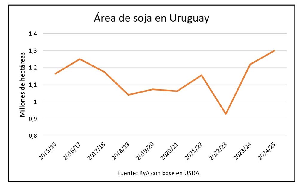 A la vez, el Departamento de Agricultura de Estados Unidos (USDA) proyecta para un Uruguay un aumento de 80 mil hectáreas respecto a su pronóstico del año pasado que fue de 1,22 millones de hectáreas. Se llegaría a 1,3 millones de hectáreas.