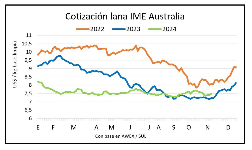 El citado promedio en Australia se sitúa 3,6% por encima de un año atrás y algo por debajo del promedio de la exact zafra 2024/25 que es de US$ 7,58 el kilo.