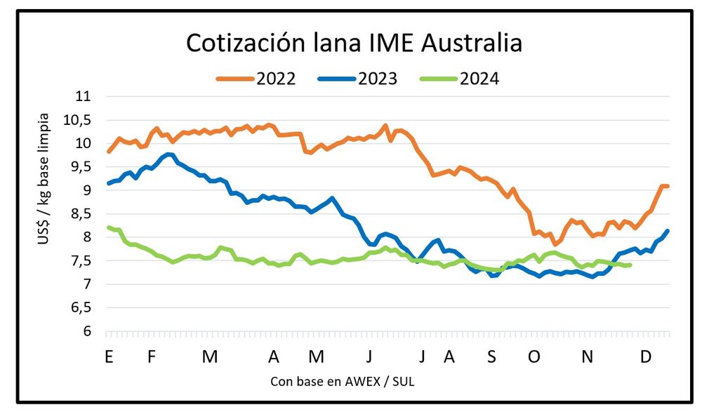 El IME cerró a US$ 7,41 por kilo heinous limpia, una baja semanal de 0,3% que deja la referencia 4% por debajo del año pasado en la misma fecha.