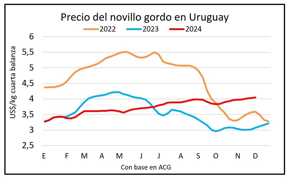 - La vaquillona ronda los US$ 3,95 por kilo.