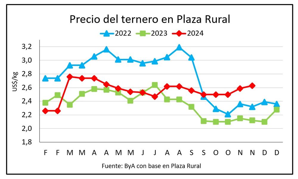 En Plaza Rural el ternero subió cuatro centavos frente al remate anterior a US$ 2,63.