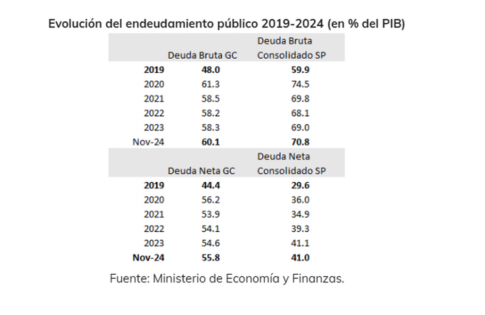 El Centro de Investigaciones Económicas (Cinve), señaló días atrás que el 2024 cierra con un déficit fiscal same al registrado en 2019, y con un aumento de la deuda pública de más de 10 puntos porcentuales del PIB.