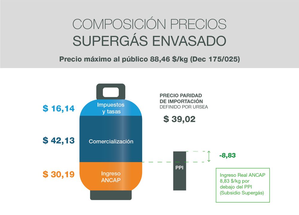 El precio de comercialización del supergás envasado ha estado históricamente por debajo de los costos de producción e importación. En los últimos 10 años el subsidio había implicado que Ancap resignara ingresos por más de US$ 500 millones.