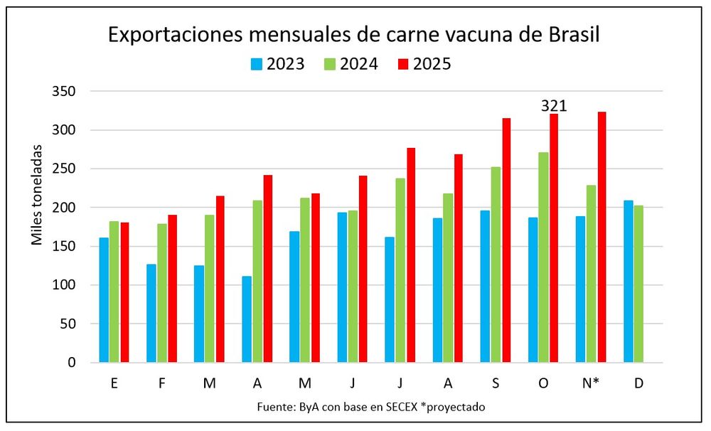 Mientras tanto, Brasil sigue enviando volúmenes récord al gigante asiático que en los últimos dos meses importó más de 600 mil toneladas (setiembre-octubre), con un creciente peso de Brasil.