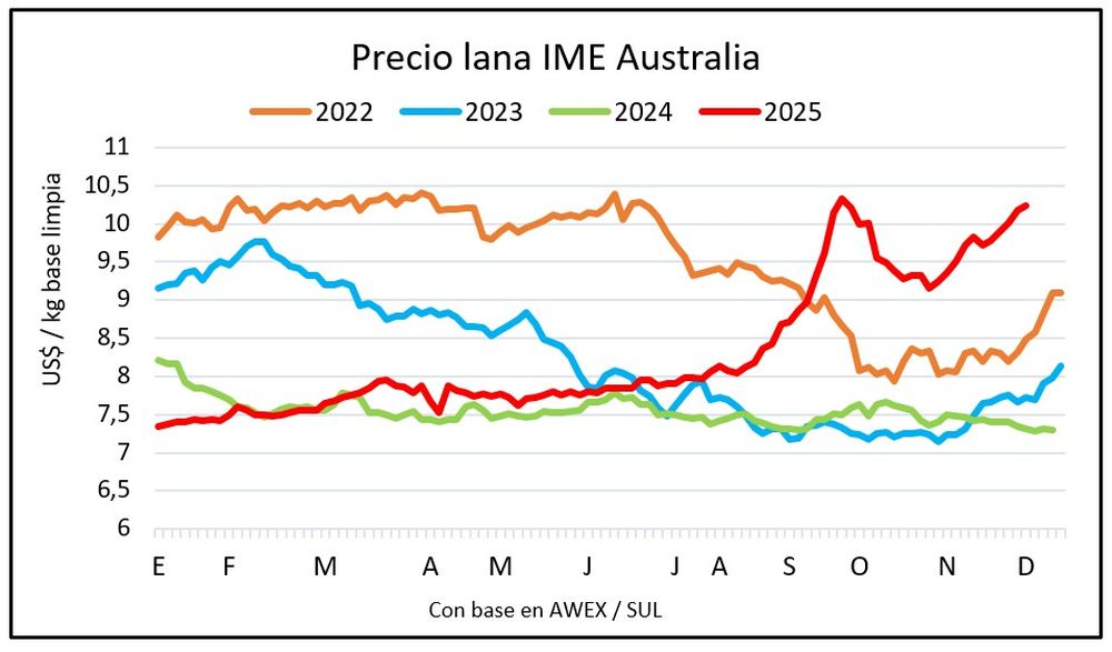 La lana, por su parte, se sostiene en los valores más altos en años y con demanda fluida en el mercado local. El indicador IME subió 2,2% hasta US$ 10,23 por kilo disagreeable limpia en Australia, 40% por encima de hace un año y el mayor valor en seis años.